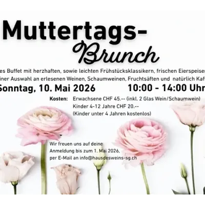 Am 10. Mai 2026 findet von 10 bis 14 Uhr im Haus des Weins ein reichhaltiger Muttertagsbrunch mit erlesenen Getränken statt.