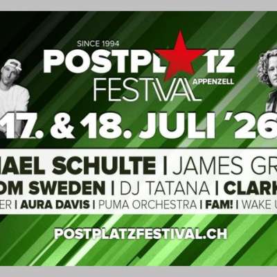 Das 30. Postplatz Festival wird am 17. & 18. Juli 2026 in Appenzell durchgeführt. Für das leibliche Wohl sorgen verschiedene Bar- & Foodstände.