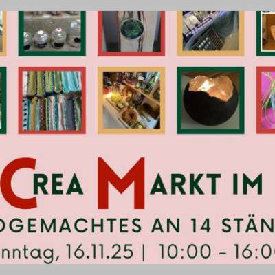 Am 5. CreaMarkt im 3. Stock von Kultur hoch 3 werden vielfältige kreative Arbeiten verschiedener Ausstellender präsentiert. Besucherinnen und Besucher können handgefertigte Geschenke entdecken oder sich selbst etwas Schönes aussuchen.