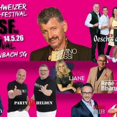 Am Auffahrts-Donnerstag, 14. Mai 2026 ist es wieder so weit! Das 5. Ostschweizer Schlagerfestival. 100% Sitzplatzgarantie, Rollstuhlgängig