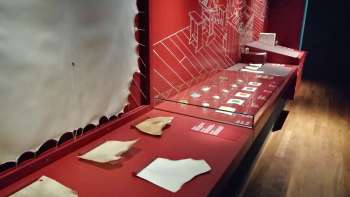 Der berühmte St.Galler Klosterplan kann nach einer einführenden Multivision einige Sekunden im Original betrachtet werden. Das wertvolle Dokument muss aus konservatorischen Gründen vor zu starker Lichtexposition geschützt werden.