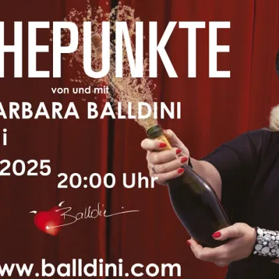 Die Aufklärerin der Nation geht in den wohlverdienten Unruhestand. Doch vorher fegt Sie noch mit ihrem Abschiedsprogramm „Höhepunkte“ über die Bühne. Hier vereint Balldini das Lustigste und Spannendste aus acht Kabarettprogrammen: alles, was Sie schon immer über die angeblich schönste Sache der Welt wissen wollten. Mit „Höhepunkte“ vereint Balldini das Lustigste und Spannendste aus acht Kabarettprogrammen: alles, was Sie schon immer über die angeblich schönste Sache der Welt wissen wollten. Sie erklärt die Dos and Don’ts im Schlafzimmer ebenso wie Vorlieben und Neigungen, die das menschliche Dasein bereichern. Sie gibt Beziehungstipps für den Alltag und erzählt Anekdoten aus ihrer Praxis. Sie beantwortet geheime Fragen, klärt Mythen auf oder spricht über die Auswirkungen von Pornografe auf unsere Sexualität. Und nicht zuletzt entlastet sie Paare, die Angst haben, weil „das im Bett“ immer weniger funktioniert und ist mit ihrem Wissen für Jung und Alt eine Inspiration. „Höhepunkte“ funktioniert dabei aber stets als eigenständiges Kabarettprogramm und ist somit weit mehr als klassisches „Best-Of“. Neben den unzähligen Hihi- und Haha-Momenten gibt es dabei auch viele Aha- Erkenntnisse – denn wie immer gilt die Devise: Aufklärung mit Lach- UND Lerngarant