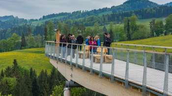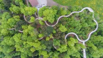 Baumkronen von oben sehen - auf dem Baumwipfelfad die Perspektive wechseln in einer ländlichen-naturnahen, inspirierenden Umgebung.