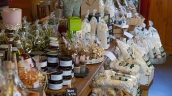 Das breite Angebot besteht grösstenteils aus eigenen Produkten, dazu gehören Gebäck, Konfitüren, Eingemachtes und vieles mehr. Daneben werden einige Produkte wie frisches Gemüse und Früchte, Milchprodukte oder Mehl von Bauern und Lieferanten aus der Region zugekauft.