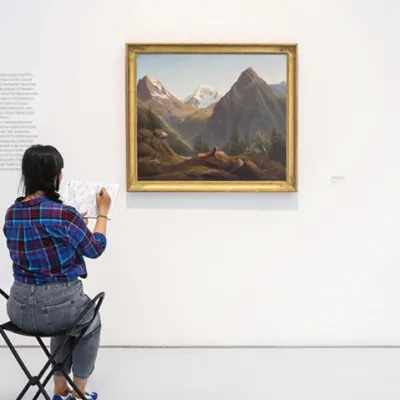 Nach einer Aufwärmübung und einer kleinen Einführung im Kunstatelier gehen wir ins Museum und zeichnen nach Herzenslust. Hier ist der Weg das Ziel, wir wollen zeichnen, um zu verstehen, was wir sehen.