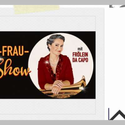 Frölein Da Capo studierte das Showgeschäscht, die Leichtigkeit des Scheins, befasste sich mit Schall und Rauch, dem Verdrehen von Tatsachen - und Köpfen. Erleben Sie polierte Instrumente, vergoldete Pailleten, versilbertes Haar und vergängliche Beweglichkeit in der fulminösen Ein-Frau-Show.