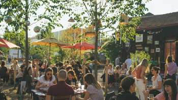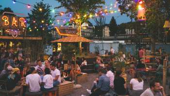 Beim Gustav Gleis trifft man sich zum Feierabendbier und zu feinen Speisen, umgeben von Bäumen und Sträuchern auf dem einzigartigem Kreativplatz.
