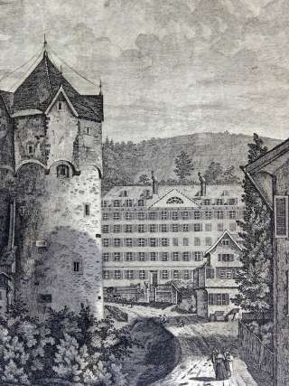 Geschichte: Der Erfolg der St.Galler Stickereiindustrie basierte auch auf ihrem technologischen Vorsprung. Die Industrialisierung der Produktion wurde überhaupt erst möglich durch die kontinuierliche Entwicklung der Technik: Der Plattstichwebstuhl, die Handstickmaschine und zuletzt die Schifflistickmaschine sicherten St.Gallen und der Ostschweiz immer wieder neu eine führende Stellung – auch im Bereich des Textilmaschinenbaus. Einer, der von diesen Standortvorteilen profitieren wollte, war der New Yorker Stickereifabrikant Isaak D. Einstein. Er eröffnete 1884 in St.Gallen eine Zweigniederlassung in einem bestehenden Fabrikgebäude an der Berneggstrasse 2, das er vom Architekten Karl August Hiller zum Stickereigeschäftshaus umbauen liess. Das Unternehmen, zunächst als «D. Einstein & Co.» und ab 1936 «Adolph Hahn & Co.» bekannt, war eines der bedeutendsten in der St.Galler Stickereiindustrie. Jahre mit viel Erfolg (frühe 1890er, 1902-08) wechselten mit wirtschaftlich oder durch Modekonjunkturen bedingten Flauten. Schwierig waren vor allem die 1930er-Jahre, die Zeit der Weltwirtschaftskrise. Architektur: Der Vorgängerbau war 1830 von Sabina Dorothea Allgäuer, der initiativen Witwe des Textilausrüsters Jacob Allgäuer, als Appreturanstalt erbaut worden. Er diente später als Spinnerei und beherbergte in den 1880er-Jahren im Erdgeschoss die städtische Volksküche, ab 1884 befand sich die Zweigniederlassung von Isaak D. Einstein im Gebäude. Bereits 1886 wurde an der Berneggstrasse 4 ein dreigeschossiger Anbau hinzugefügt. Dieser wurde im Zuge einer grösseren Erweiterung 1907 in den heute noch bestehenden Gebäudekomplex Berneggstrasse 4-6 integriert. Architekt war Jakob Merz. Heutige Nutzung: 1978 erwarb der St.Galler Textilunternehmer Max Kriemler die Gebäude und baute sie zum 4 Sterne Superior Hotel Einstein St.Gallen um. Dieses wurde 1983 eröffnet und 2009 mit dem Einstein Congress an der Wassergasse erweitert. Als Hommage an die Textilindustrie bietet das Einstein St.Gallen eine Textilland-Junior-Suite an, die mit exquisiten Ostschweizer Textilien ausgestattet ist.