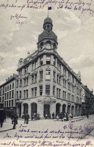 Der aus Nordböhmen stammende Wendelin Heene (1855-1913), der die Waage 1903/04 für den «Consum Verein» erbaute, war der wohl einflussreichste Architekt seiner Zeit in St.Gallen. Viele der interessantesten Grossgebäude zwischen den frühen 1890er-Jahren und 1913 wurden von ihm entworfen.