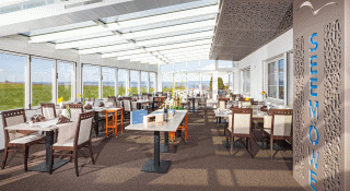 Das Restaurant des Hotels Seemöwe, auf einem Hügel gelegen und mit beeindruckendem Weitblick auf Wiesen und den Bodensee, überzeugt mit seinem vielfältigen Angebot.