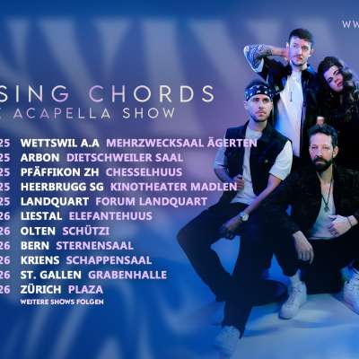 Vergiss alles, was du über Acapella zu wissen glaubst. CHASING CHORDS ist keine gewöhnliche Show – es ist ein musikalisches Erlebnis, wie du es in der Schweiz wohl noch nie erlebt hast: brutal gute Stimmung, Gänsehaut-Momente und eine fette Lichtshow treffen auf fünf Stimmen die klingen wie ein ganzes Orchester – live, echt und energiegeladen.