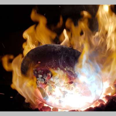 Im Rhythmus des Hammers formt sich das glühende Eisen – Schlag für Schlag nimmt das Material Gestalt an. Allmählich entsteht die Endform, und jede Metallscheibe entwickelt ihren eigenen unverwechselbaren Charakter und Klang. Zum Abschluss werden die Klangschalen im offenen Feuer auf der Innenseite vermessingt.
