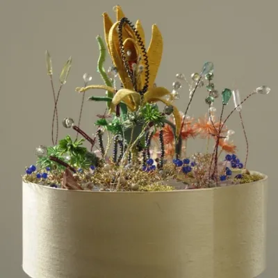 Diese musikalische Erfahrung tritt in Resonanz mit der Installation von Thessy Schoenholzer Nichols, Kuratorin, Restauratorin und Ausstellungsgestalterin. Ihre Spezialisierung auf mittelalterliche und frühneuzeitliche Textilien, insbesondere Grabgewänder, verleiht ihrem Werk besondere Tiefe. In ihrer Installation erscheinen Miniaturgärten und Pflanzen im künstlerischen Kontext, durch Licht zum Leben erweckt. Ihre Silhouetten zeichnen sich an den Wänden ab, verwandeln sich in Atemzüge der Musik. So entsteht eine einzigartige Atmosphäre – ein Klanggarten, in dem Natur und Ton ineinanderfliessen.