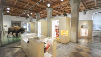 Die Sammlung des Museums umfasst Objekte aus der Ur- und Frühgeschichte bis zum 20. Jahrhundert sowie vielfältige Artefakte aus verschiedenen Kulturen weltweit. Geschichte: Die Ortsbürgergemeinde St.Gallen beschloss am 28. Juni 1914 den Bau des damaligen Historischen und Völkerkundemuseums – genau an dem Tag, an dem der Erste Weltkrieg begann. Es war eines der letzten Grossprojekte während des Stickereibooms. Die Eröffnung fand schliesslich am 31. März 1921 statt. Architektur: Entworfen von den Winterthurer Achitekten Bridler & Völki wurde das Museum zwischen 1915 und 1921 erbaut. Der neo-klassizistische Walmdachbau präsentiert eine imposante Säulenordnung an der westlichen Schaufassade, die sich auch auf der Ostseite wiederholt. Der zentrale Innenhof dient als Veranstaltungsort, während die Innenräume buchstäblich um die Sammlungen herum gebaut sind, was dem Gebäude den Charakter eines Gesamtkunstwerks verleiht. Es ist nicht nur eine Hülle, sondern eine eigenständige, sinnliche Kulisse. Heutige Nutzung: Das Kulturmuseum St.Gallen beherbergt heute eine der bedeutendsten kulturgeschichtlichen Sammlungen der Ostschweiz. Einen Schwerpunkt bildet die Geschichte von Stadt und Region St.Gallen. Zu den Highlights gehören einzigartige Objekte zum Leinwandhandel und ein Stadtmodell, das St.Gallen um 1642 zeigt. Besonders beeindruckend sind die originalen historischen Zimmer, darunter auch der Prunksaal von St.Galler Fürstabt Joachim Opser aus dem 16. Jahrhundert. Das Museum legt grossen Wert auf ein vielfältiges Angebot für Familien und Kinder, wobei das Kindermuseum im Dachstock zu den beliebtesten Abteilungen gehört.