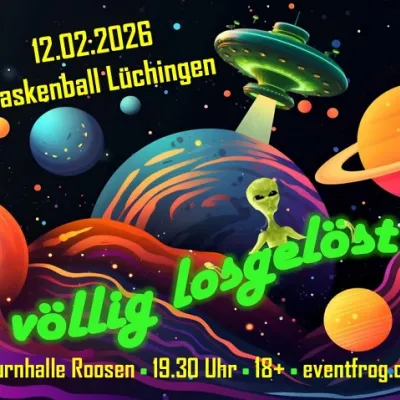 Getreu dem Motto "Völlig losgelöst" hebt der Lüchinger Maskenball in neue Galaxien ab. Sechs Guggenauftritte sind gesetzt - dazwischen sorgt DJ Gottschalk für intergalaktische Beats. Um Mitternacht findet die grosse Maskenprämierung statt.