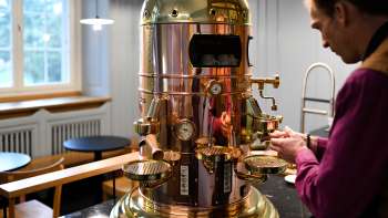 Das MuCafé ist stilsicher und sorgfältig gestaltet und mit hochwertigsten Materialien gebaut. Aus der schönsten Maschine, einer «Elektra Belle Epoque», werden der beste Cappuccino und Espresso gezaubert.