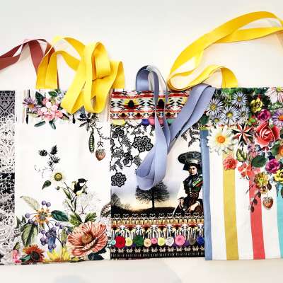Die bunten Drucke, inspiriert von St.Galler Stickerei und Appenzeller Tracht, sind von Bernhard Duss exklusiv für die Manufaktur entworfen worden. Das Sujet wählen Sie selbst aus und die Henkel-Farbe bestimmen Sie selbst. Genäht wird unter professioneller Anleitung in der Schneiderei.
