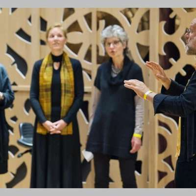 Besonders spannend ist der Austausch mit den Parallelkursen ‹Vom Naturjodel zum freien Jodeln› und ‹Spiel mit der Stimme›. Die drei erfahrenen Kursleitenden Marcello Wick, Alessandro Zuffellato und Sonja Morgenegg arbeiten seit über zehn Jahren zusammen – so entstehen ganz von selbst gemeinsame Momente und kreative Verbindungen.