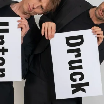 Das Duo gerät ob der Erwartungen der Sprechenden gehörig unter Druck. Die absurden und unterhaltsamen Wortgefechte entblössen ganz neue und private Seiten der beiden Blattländer. Ein kollektiver Lesegenuss von gehobenem Blöd & Sinn. Und das Publikum vollendet den Sound des Abends im Kopf.