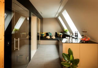 Private Spa Superior: Dampfbad / Sauna, Finarium / Erlebnisdusche / Liegestuhl mit grosser Terrasse / Lounge / Snacks / Getränke / Ausblick über die Stadt