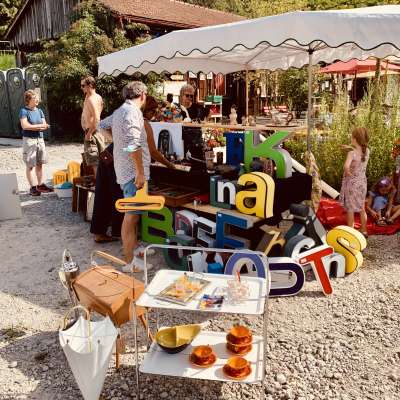 Gemütlich in alten Sachen stöbern, feilschen und die tolle Atmosphäre auf dem Areal Bach Platz geniessen.