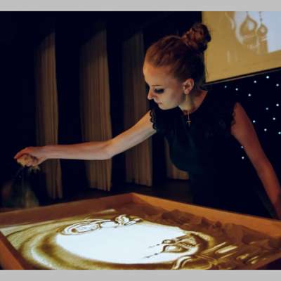 Mit feinem Sand zaubern die Hände der Sandmalerin fantasievolle Szenen aus bekannten Märchen wie „Hänsel und Gretel“, „Schneewittchen“, „Rotkäppchen und der böse Wolf“ u.a. auf eine beleuchtete Glasplatte. Dabei entstehen höchst lebendige Bildergeschichten, die von einer Kamera gefilmt und gleichzeitig auf eine für den Zuschauer:innen sichtbare Großbildleinwand projiziert werden.