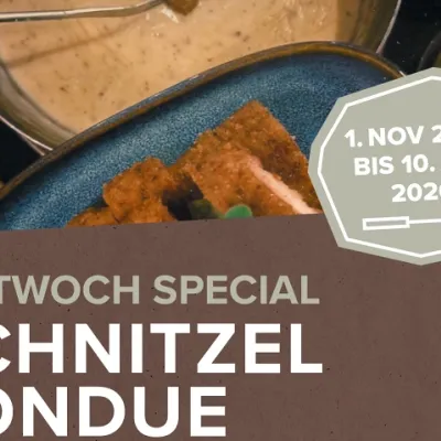 Dieses Jahr neu auf der Karte: das Schnitzel-Fondue – zarte Schnitzelstückli werden hier statt Brot in den Käse getunkt. Ein Genuss, den man am besten selbst erlebt. Jeden Mittwoch ist «Schnitzel-Mittwoch» – wer dabei sein will, reserviert besser frühzeitig, denn: es het, solangs het!