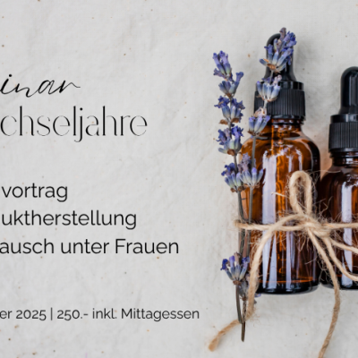 Die Wechseljahre sind kein Verlust, sondern ein Übergang in eine neue, selbstbestimmte Lebensphase. In diesem Seminar erfährst du, wie du körperliche und seelische Veränderungen besser verstehst, mit natürlichen Methoden unterstützt und deine innere Balance stärkst. Wir verbinden fundiertes Wissen aus der Naturheilkunde mit praktischen Übungen, Austausch und Inspiration – für mehr Leichtigkeit, Klarheit und Lebensfreude in dieser besonderen Zeit.