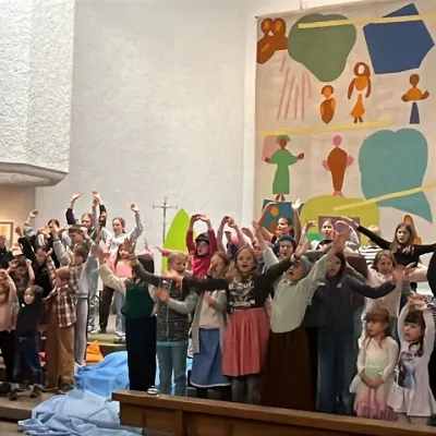 Über 50 Kinder aus St. Gallen spielen und singen die bekannte Geschichte "Die Kinderbrücke".
