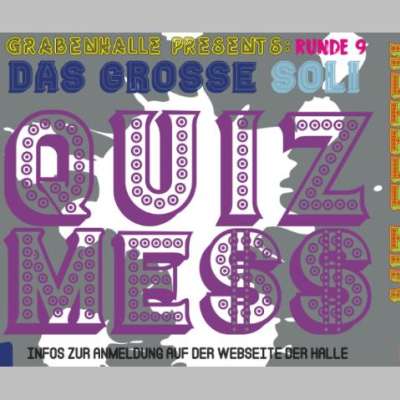 Ihr habt wieder lang genug gewartet: Die nächste Ausgabe des Soliquiz steht vor der Tür. Euer (einziger) Grund, euch auf Weihnachten zu freuen. Wir rasseln wie immer wild durch verschiedene Themenbereiche. Mitgespielt wird in Teams vor Ort mit einem Quiz-Bogen, auf der Bühne führt eine launige und (semi-)trinkfeste Moderation durch den Abend, dazwischen gibt's Pausen und Auflockerungen. Du kannst alleine spielen oder in Teams mit maximal fünf Personen zusammen. Ohne Handy und Cheats. Es gibt eine kleine Anmeldegebühr deren Höhe ihr selber bestimmt. Der Stutz geht SOLI an eine Kampagne (wird am Abend verkündet wohin). Oh, und claro: Es winken auch in diesem Jahr fette fette Preise. Wer schon mal dabei war: you know, you know! Melde dein Team jetzt über unsere Mailadresse soli-quizz@grabenhalle.ch an (inkl. Team-Name) und reserviere dir einen der begehrten Tische (mit Team-Name). A presto! [gallery columns="4" ids="eyJ1cmwiOiJodHRwczpcL1wvd3d3LmdyYWJlbmhhbGxlLmNoXC93cC1jb250ZW50XC91cGxvYWRzXC8yMDI1XC8xMVwvMjAyNV8xMl8yM19Tb2xpUXVpek1lc3MyLmpwZyIsInRpdGxlIjoiMjAyNV8xMl8yM19Tb2xpUXVpek1lc3MyIiwiY2FwdGlvbiI6IiIsImFsdCI6IiIsImRlc2NyaXB0aW9uIjoiIn0="]