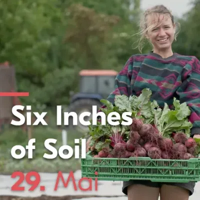 SIX INCHES OF SOIL erzählt die inspirierende Geschichte junger britischer Landwirt:innen, die sich gegen das industrielle Ernährungssystem stellen und mit regenerativer Landwirtschaft Böden, Gesundheit und lokale Gemeinschaften stärken.