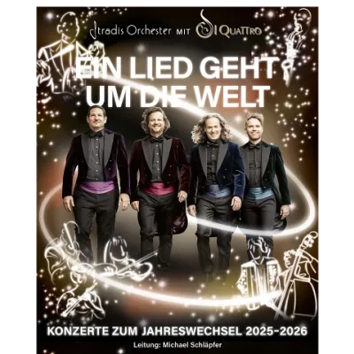 Ein Lied geht um die Welt: Zum Jahreswechsel lädt STRADIS ORCHESTER zu einem unvergesslichen musikalischen Feuerwerk ein. Unter der Leitung von Michael Schläpfer präsentiert Ihnen das professionelle Unterhaltungsorchester mit den gefeierten Schweizer Tenören I QUATTRO ein buntes Programm. Unter dem Motto „Ein Lied geht um die Welt“ werden Sie auf eine spannende Reise von Berlin über Paris, Italien und Wien bis nach Amerika entführt. Es erklingen Kompositionen von Paul Lincke, Emile Waldteufel, Ennio Morricone, Nino Rota, Josef Strauss, Emmerich Kálman, Astor Piazzolla, George Gershwin und vielen anderen, die extra für Stradis Orchester arrangiert werden.