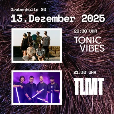 Treibende Grooves, funky Riffs, sphärische Klänge und eine mitreissende Stimme geben der St. Galler Band ihr unverkennbares Markenzeichen. Das sind die Zutaten von TONIC VIBES, womit sie rockige Songs gepaart mit poppig, melodiösen Elementen liefern.