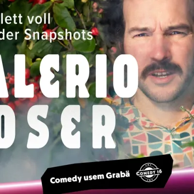 Um all diese Eindrücke einzufangen, hat er nun ein Jahr mit Kurztexten begleitet. Seine Aufgabe: Pro Tag ein Text: Hier reihen sich sanfte Beobachtungen an sprachspielerische Feuerwerke, Reflexionen über kleinstädtisches Vereinsleben an Kapitalismuskritik. Die daraus entstandene Show ist wie Valerio Moser selbst: ein Tablett voll glitzender Snapshots!