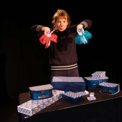 Auf der Bühne befinden sich gemusterte Koffer und Kisten in verschiedenen Grössen. In jedem Koffer steckt ein Gedicht, das mit der Frage «Vielleicht du?» endet. Die darin wohnenden Wesen wenden sich an ihr Publikum: So möchte die Schneefrau Elkje gekühlt werden, der Zwerg Fritz einen Tanzpartner finden, und Specht Guido will, dass man ihn hört. Wer kann ihnen helfen?