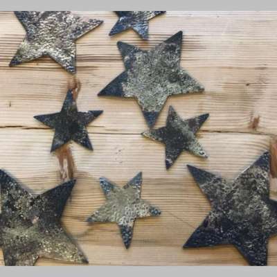 In diesem Kurs fertigen Teilnehmende Sterne aus Stahlblech, verleihen ihnen eine besondere Struktur und vermessingen sie im offenen Schmiedefeuer.