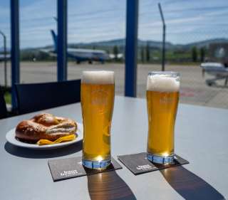 Regionale Spezialitäten und exklusiver Blick auf den Flugplatz.