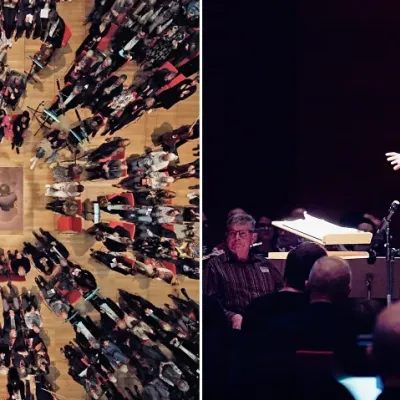 Das Orchester verteilt sich im gesamten Carmen Würth Saal, öffnet ungewohnte Klangperspektiven und lässt die Grenze zwischen Zuhörenden und Musizierenden beinahe verschwinden. Man sitzt zwischen den Streichern, hört die Atempausen der Bläser, spürt die Wärme der Hörner und erlebt die Energie der Schlaginstrumente aus nächster Nähe.