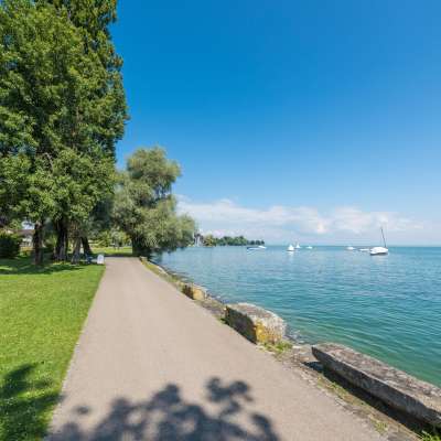 Travel from St. Gallen to Lake Constance on a guided moped tour and end the day relaxing at a beach bar.