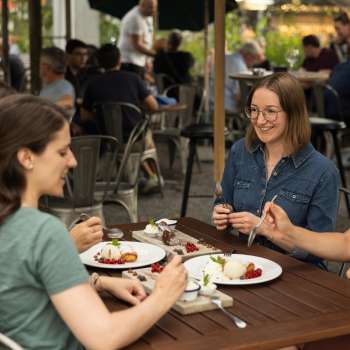 The first course is served in the Scheitlinsbüchel restaurant, which is located not far from Notkersegg Monastery. Enjoy not only a delicious starter, but also the fantastic view over the city. After a walk along the Three Weirs, which were artificially created in the 17th century, the Falkenburg restaurant will spoil you with the main course from the seasonal menu and a view of the lights of St.Gallen. Then it's back to the old town. The crowning finale awaits you at the Brauwerk restaurant. For dessert, enjoy one of the many craft beers brewed on site by the creative master brewers. En Guätä!