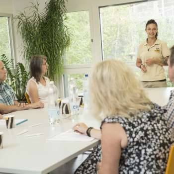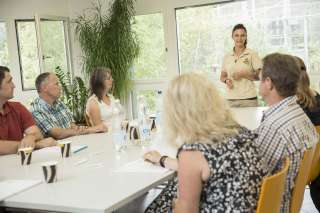 The seminar room at Walter Zoo offers space for up to 50 people and a unique view of the tiger enclosure. Various catering options are available. Parking spaces and the bus stop are right next to the zoo grounds. And the animals - chimpanzees, lions, lesser pandas, flamingos, parrots and many more - can not only be admired during the breaks: Individual guided tours and animal encounters are also offered.