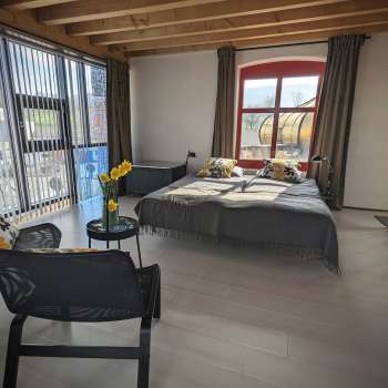 The 2-storey apartment offers plenty of space for 1-2 adults (no children). Dogs are also welcome. Bicycles can be stored and e-bikes can be charged. Free parking spaces are available around the house.