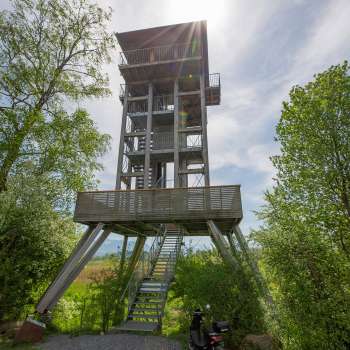 On the occasion of the 200th anniversary of the canton of St.Gallen in 2003, an observation tower was built on the edge of the Spitzmäder nature reserve on the municipal border between Altstätten and Oberriet. The extensive view of the Rhine valley and the accompanying mountain panorama, as well as the many opportunities for observing the animal world, make a visit to the architecturally successful observation tower worthwhile in any weather.