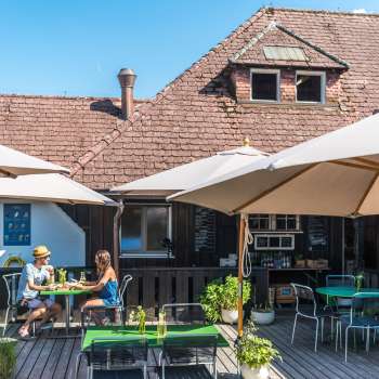 The old bathing hut built in 1924 is the only remaining building of its kind on the Swiss side of Lake Constance. The historic wooden bathing hut is perched on pillars in the lake and can only be reached by bridge from the shore. It is not only a tourist attraction, but also beloved by locals as a place to meet up with friends. Bathers and walkers alike can enjoy refreshing drinks, coffee and cake in the restaurant with seating in the small and inviting inner courtyard and on the access bridge.