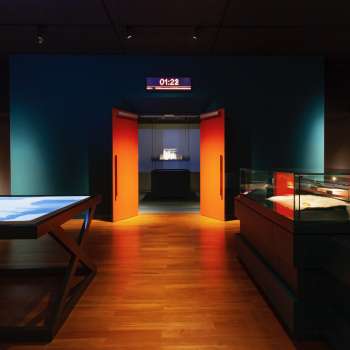 After an introductory series of multivision panels, the famous St.Gallen monastery plan can be viewed in its original form for a few seconds. To preserve the valuable document, it must be protected from excessive exposure to light.