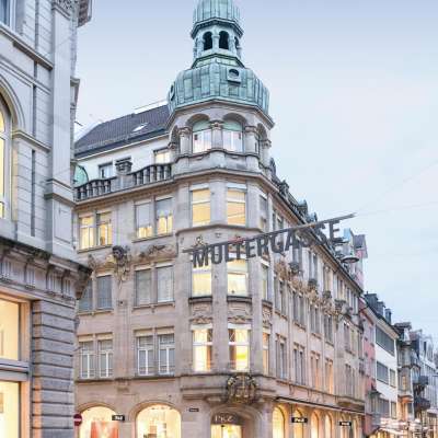 With its five high storeys - the uppermost hidden behind a stone balustrade - Wendelin Heene opened up a new architectural perspective for Multergasse, which experienced a boom as a shopping street after 1900.