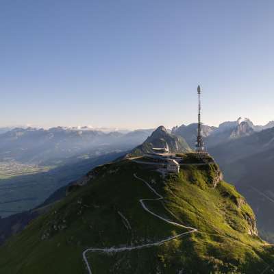 On the Hoher Kasten, the approximately 300-meter-long Europa-Rundweg offers views of six countries and the wonderful landscape. The circular trail is wheelchair accessible and thus also walkable for families with strollers and people with walking disabilities. In the summer months, alpine plants can be admired in the alpine garden. The only revolving restaurant in eastern Switzerland rotates once around its own axis within an hour and offers a 360° panorama at 1794 m above sea level. The self-service panorama restaurant rounds off the culinary offerings on the summit. Around the Hoher Kasten there are various tours in the best developed hiking area of the Alps.