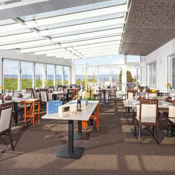 The restaurant of Hotel Seemöwe, situated on a hill with an impressive view of alpine meadows and Lake Constance, attracts guests with its inspired menu.