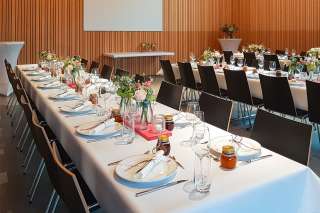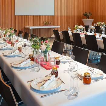 In Berneck, the largest wine-growing municipality in the canton of St. Gallen, the House of Wine with its striking roof has been open to guests since October 2018. Every Saturday from 2 pm to 6 pm, the fascinating variety of St. Gallen wines can be discovered here and tasted to your heart's content. A total of 20 winemakers take advantage of the stylish platform and present around 100 wines from the Rhine Valley, Sarganserland/Walensee and Lake Zurich regions. And of course, your favorite wines and other fine products from the region can be purchased on site.