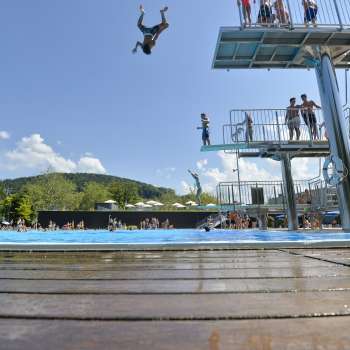 The Lerchenfeld outdoor pool offers the ideal water fun for everyone who wants to cool off - whether it's distance swimming in the 50m pool, high diving in the diving bay or in the fun pool with two neck massage jets. For younger bathers, the Lerchenfeld outdoor pool offers four children's pools with awnings and a wide slide for refreshment. Sporting fun on land is also provided. There are beach volleyball and basketball courts, table tennis tables and an adventurous playground.